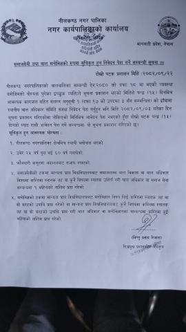 व्यवसायिक मौरी प्रवर्दन कार्यक्रम सञ्चालन सम्वन्धी सूचना ।