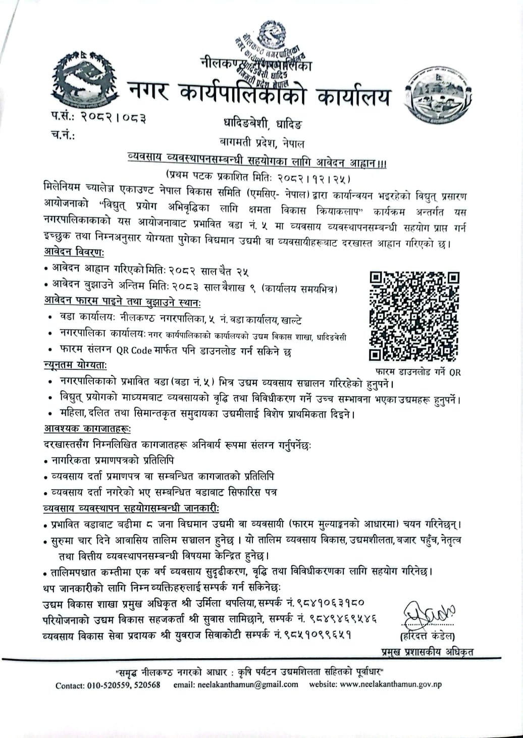 व्यवसाय विकास सम्बन्धी तालिमको लागि सूचना (वडा नं. ५ को लागि)