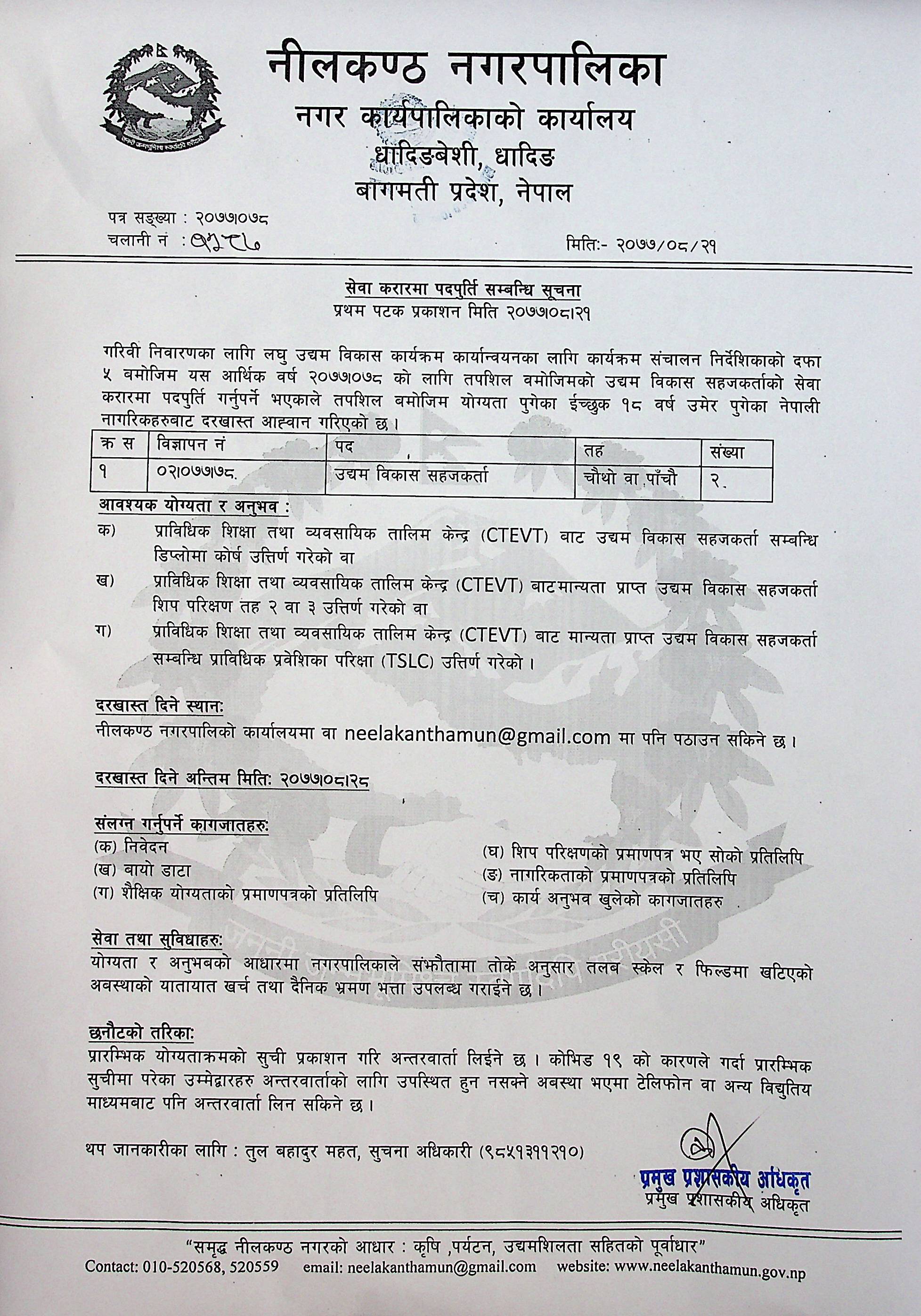सेवा करारमा पदपूर्ति सम्बन्धि सूचना