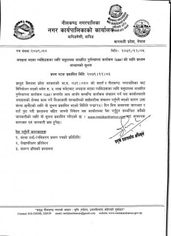 अपाङ्गता भएका व्यक्तिहरुका लागि समुदायमा आधारित पुनस्थापना कार्यक्रम (CBR) को लागि संस्था छनोट सम्वन्धी सूचना ।