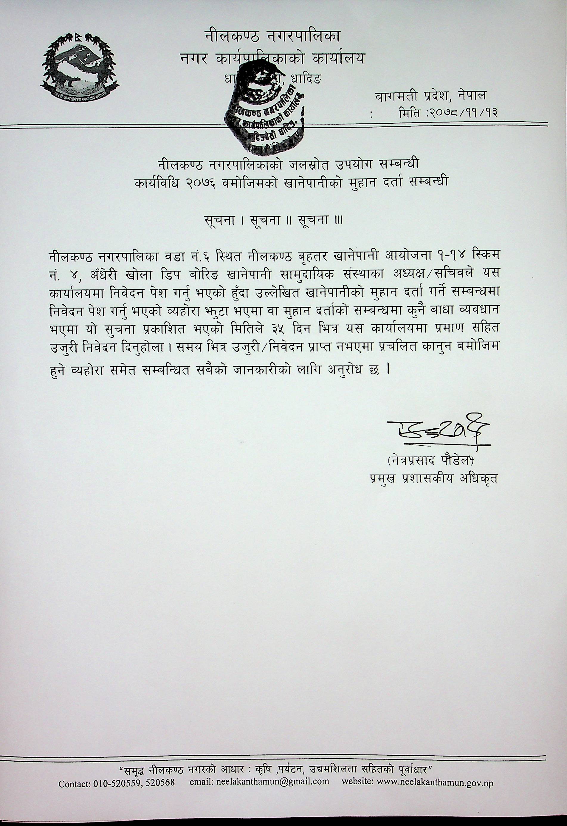 सामाजिक विकास मन्त्रालयको सूचना बमोजिम आवश्यक कागज सहित निवेदन पेश गर्ने सम्वन्धमा ।
